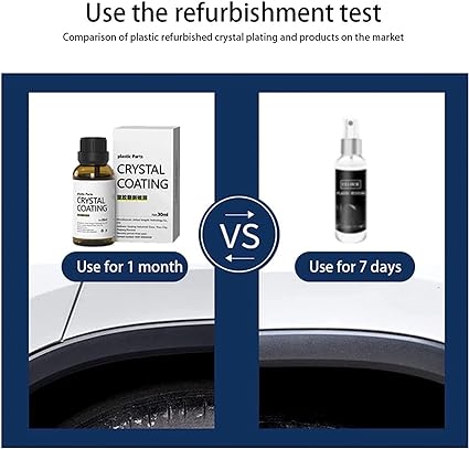 Transform your vehicle with our advanced Plastic Parts Crystal Coating, an exceptional black polish for car enthusiasts. This crystal polishing agent is designed to rejuvenate and protect your car's plastic components, ensuring a lasting shine and robust protection. Our innovative formula never damages your plastic parts. Simply apply the coating to the sponge and wipe gently to reveal a new, refreshed look. This plastic revitalizing polishing agent forms a protective layer over the car body, shielding it from fog, bird droppings, UV rays, scratches, crushed stones, and iron filings. Rain, sleet, ice, and other precipitation are easily dispersed by the Car Trim Restorer, preventing visibility obstructions on the glass. Experience a deep shine and slick surface with our High Protection Plastic Refresher Car. This plastic coating agent offers longer-lasting protection than anything on the market. It is safe for all surfaces, leaving no white residue or streaks. Ideal for dashboards, door frames, panels, pedals, and other plastic parts, this plastic restoring agent for car interiors and exteriors provides a remarkable gloss and refreshes your entire vehicle in minutes. The effects last up to six months. Our Plastic Parts Refurbish Agent's scientific formula ensures no damage to plastic parts, trim, or paint.
